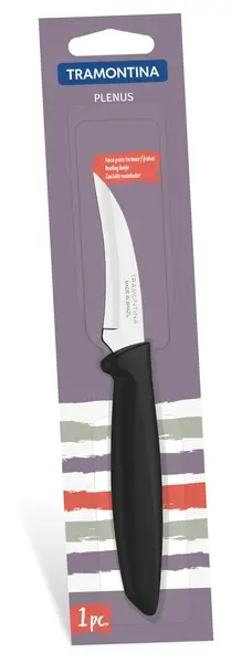Ніж обробний TRAMONTINA PLENUS, 76 мм 23419/103 має вишуканий дизайн та буде гарно виглядати на будь який кухні. Фахівці компанії TRAMONTINA при проектуванні урахували всі запити користувачів та зробили дійсно якісний продукт. Анатомічна конструкція та функціонал спрощує процес користуванням.