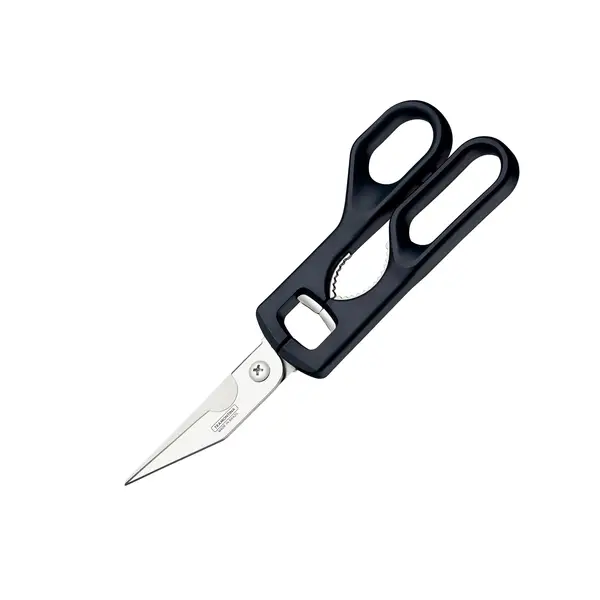 Кухонні ножиці серії SUPERCORT мають міцні леза з нержавіючої сталі 18/10. Завдяки фірмовому заточуванню, аксесуар легко справляється з різкою навіть щільних предметів. Пластикові чорні ручки зручні у використанні та не ковзають. Багатофункціональність пристрю забезпечують додаткові зубчики для розколювання горіхів. Ножиці TRAMONTINA SUPERCORT 25920/109 довжиною 23 см стануть незамінним помічником на вашій кухні.