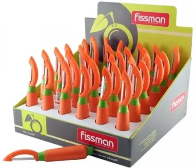 PR-7010.PP Ніж для чищення овочів у формі моркви Fissman має вишуканий дизайн та буде гарно виглядати на будь який кухні. Фахівці компанії FISSMAN при проектуванні урахували всі запити користувачів та зробили дійсно якісний продукт. Анатомічна конструкція та функціонал спрощує процес користуванням.