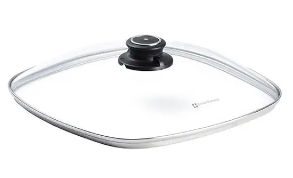 Скляна жароміцна кришка;Має поворотну ручку для відведення пари;Витримує температуру до 260 °С; Зроблено у Швейцарії.Посуд для приготування цієї торгової марки визнаний найкращим у світі! Вона здобула золоту медаль на всесвітній виставці інновацій. Особливе ноу-хау, завдяки якому продукція Swiss Diamond отримала всесвітнє визнання та повагу – це унікальне запатентоване антипригарне покриття, що містить частинки алмазів. Wall Street Journal назвав її Роллс-ройсом у світі посуду. Це найкращі сковороди на думку споживачів Сполучених Штатів.
