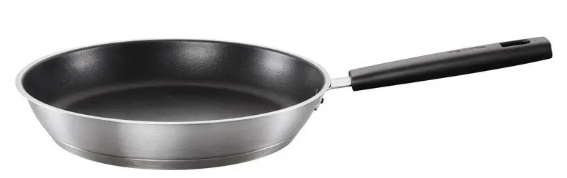 Міцна сковорода з нержавіючої сталі для інтенсивного використання. Антипригарне покриття Hardtec Superior + ™ тепер не тільки не містить ПФОК та ПФОС, але й довговічніше, ніж будь-коли раніше. Бакелітова ручка залишається прохолодною і забезпечує гарне захоплення під час приготування. Товсте тришарове дно рівномірно нагрівається на всіх типах плит, включаючи індукційні. Можна мити в посудомийній машині. Зроблено у Фінляндії.